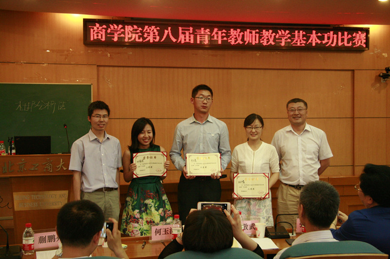 为提升青年教师教学基本功,助力青年教师迅速成长,为青年教师提供展示平台,6月15日下午,商学院在阜成路校区举办“商学院第八届青年教师教学基本功比赛”,学院2013年至2015年入职的专任教师共17名参加比赛。本次比赛由商学院分工会组织,邀请了教务处处长左敏出席,商学院曾获得学校优秀教学奖并具有丰富教学经验的王真、王敬武、严欢、何玉润、张继德、欧阳爱平、蒯鹏州、穆林娟老师担任评委。学院领导班子和全体教师现场观摩。本次比赛由物流管理系系主任张浩老师主持。