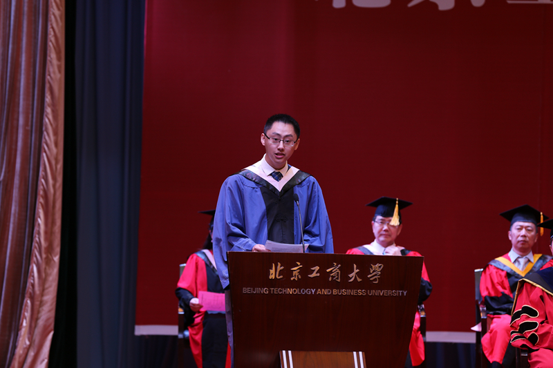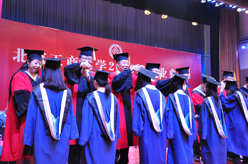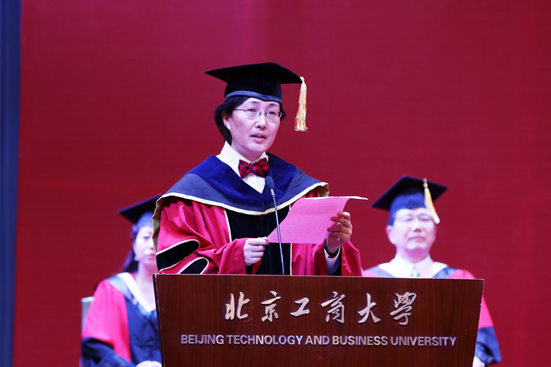 副校长谢志华宣读了《北京工商大学关于2016届研究生准予毕业及学位授予的决定》,副校长张耘宣读了《北京工商大学关于表彰2016届研究生优秀毕业生的决定》。2016年,我校共有789名全日制硕士研究生完成全部课程并获得毕业证书,共有871名研究生(含非全日制和同等学力)被授予硕士学位;有63名研究生被评为校级优秀毕业生,其中33名同学被推荐为市级优秀毕业生。