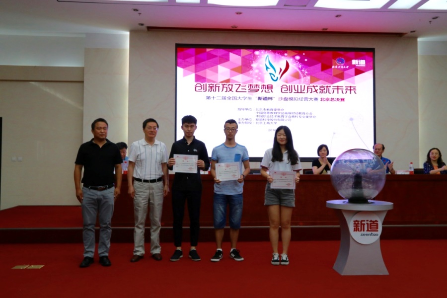 最后,本次大赛实战赛前六名的团队经过视频展示、经营展示、评委提问与回答等环节,按综合得分结果决出冠、亚、季军。来自德勤、安永、康思迪等公司的财务专家们受邀担任了现场答辩环节的评委。中国青年政治学院队获得冠军,我校B队、燕京理工学院A队获得亚军,燕京理工学院B队、北京化工大学A队、首都师范大学B队获得季军。