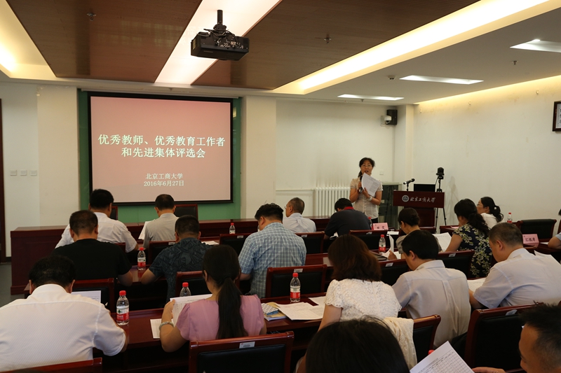 根据学校《关于开展北京工商大学优秀教师、优秀教育工作者和先进集体评选表彰活动的通知》(北工商校发[2016]21号)文件精神,在各单位申报推荐基础上,经学校初审,确定共有优秀教师候选人30名、优秀教育工作者候选人23名,13个单位申报先进集体。为进一步体现公平、公正、公开,此次评审会评委由学院(部)主要负责人以及相关职能部门负责人组成,进行现场投票。