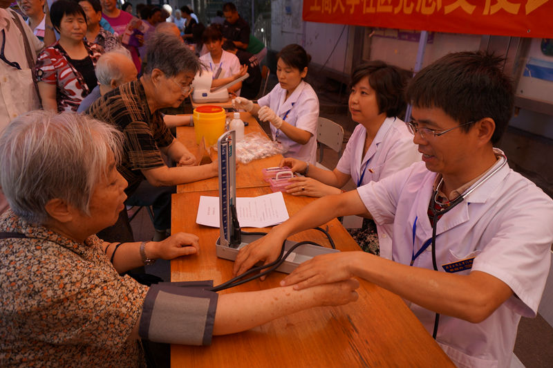 海军总医院是第四次参加我校的便民服务活动的医疗单位,为保证医疗服务质量,他们特意派出了心脏外科、心血管内科、消化内科、呼吸内科、骨科等7个科室的专家团队,到现场为居民进行义务问诊和咨询,深受广大居民尤其是离退休老同志的欢迎。