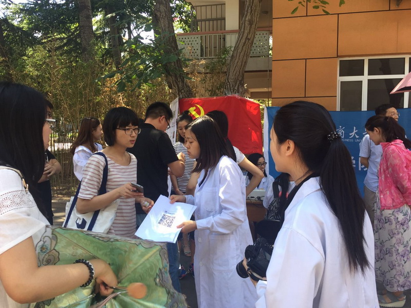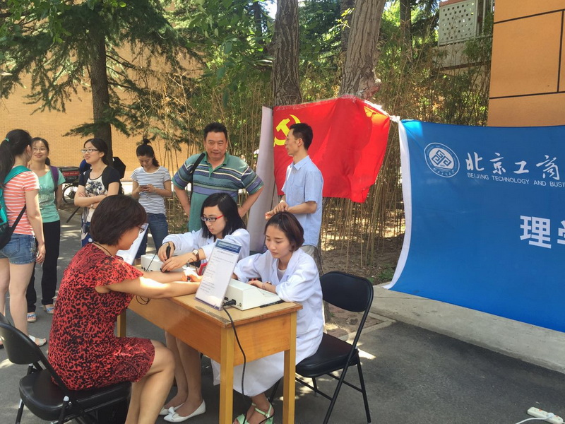 为庆祝中国共产党成立95周年、贯彻执行“两学一做”学习教育,7月1日,理学院党委联合化妆品系党支部与学生党支部在阜成路西校区,开展了结合自身专业特点的“走基层,宣护肤”主题党日活动。