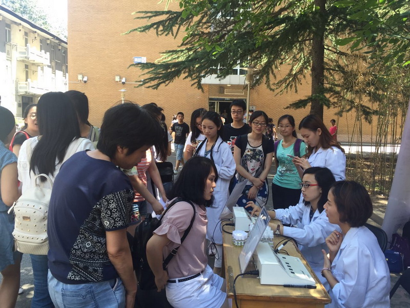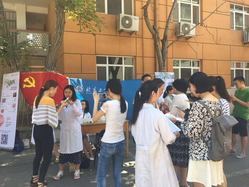 党员同志们热情地向每一位前来咨询的老师和学生详细讲解关于夏季防蚊止痒的相关知识,免费提供了皮肤测试并耐心分析检测结果。化妆品系党支部的老师们还将自己实验室研发的植物驱蚊水和蚊虫叮咬止痒剂试用品免费分发给参与活动的老师和同学,并通过微信平台征集意见,为大家奉献更为优质的产品。