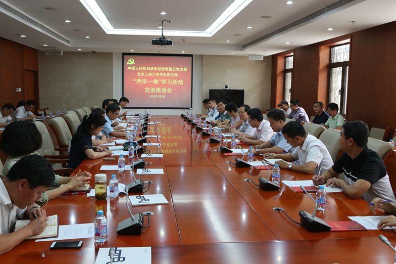 此次党日活动以“铭记党史,不忘初心,立足本职,继续前进”为主题,重温中国共产党领导中国人民取得抗日战争胜利的光辉历史,感受革命先辈对理想信念的执着追求和坚守,教育引导党员进一步坚定理想信念、提高党性觉悟。活动邀请中国人民抗日战争纪念馆第五党支部与我校校办党支部交流“两学一做”学习教育情况,中国人民抗日战争纪念馆馆长李宗远,副馆长罗存康、董立新及第五党支部18位党员参加座谈会。