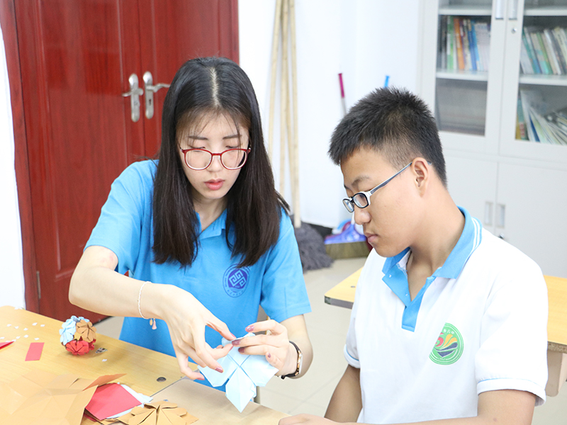 小老师们向学生们普及科普知识,传授计算机基础技术,介绍3D打印技术。手工折纸课上,一张张颜色鲜艳的彩纸,在学生们灵活的巧手下,变成一朵朵栩栩如生的花儿。在西方文化与英语交际课上,小老师用妙趣横生的英语教学方式、寓教于乐的教学理念,深入简出地为学生们讲解西方文化基本常识,介绍常用英语单词。学生们在轻松活泼的学习氛围中习得知识。
