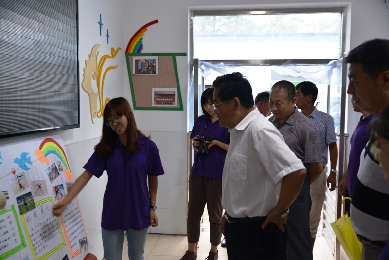 张德玉副书记一行重点视察了实践分团结合各专业特色开展的创新课程,从科技着手,孩子们经过训练,操作航模娴熟稳重。从传统文化着手,将文化底蕴融入课堂之中,以情景剧、诗朗诵、话剧的形式,培养学生的爱国信念和放眼世界的胸怀。从专业优势着手,结合英语、法学等专业知识,将创新元素融入专业课程,使课程丰富,形式活泼。张德玉副书记一行对特色课程的实践成果给予充分肯定,并鼓励实践团成员从暑期社会实践中积累从课本中得不到的经验,不畏艰苦、战胜困难,在实践中服务,在奋斗中进取,不断发扬奉献精神,继续为社会做出更多的贡献。希望我校学生与实践基地的孩子们双向学习,以大学生为标杆和榜样,激发学习兴趣,时刻谨记梦想,踏实笃行。