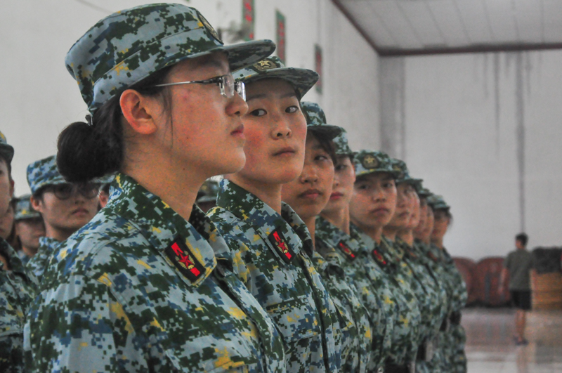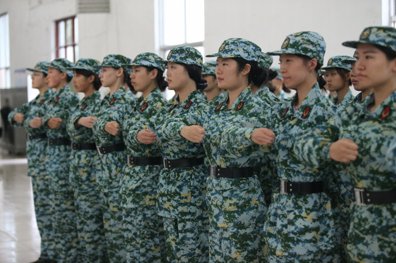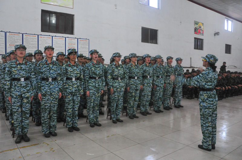 无论是教官还是队员都非常重视这两场比赛,每个连参加比赛的同学都是从自己的连队里挑选出来的精英,他们是各连风貌的代表。大家无惧恶劣的天气,跟随教官在楼道里加紧训练,并努力把动作做到位,整齐划一。由于天气原因,会操表演和歌咏表演都是在室内举行的。虽然地面有水,有些滑,但教官和老师们根据场地减去了一些脚步的动作。比赛之际雨下得很大,但再大的雨也无法消磨同学们的积极应战。同学们自信的步伐、整齐的队列、快速的反应、标准的动作和洪亮的口号,展现了初步训练的成果,也一次次赢得了场下同学的掌声。而歌咏比赛,大家也都精神抖擞、神采飞扬,嘹亮的歌声响彻全场,动人的演绎展现了同学们对军人的敬意。经济学院的王雪菲谈到:“那天下雨大家都解散了,后来雨小了点,我们队列班的又出来训练,虽然很辛苦,但是努力还是有回报的。感觉很有成就感。”