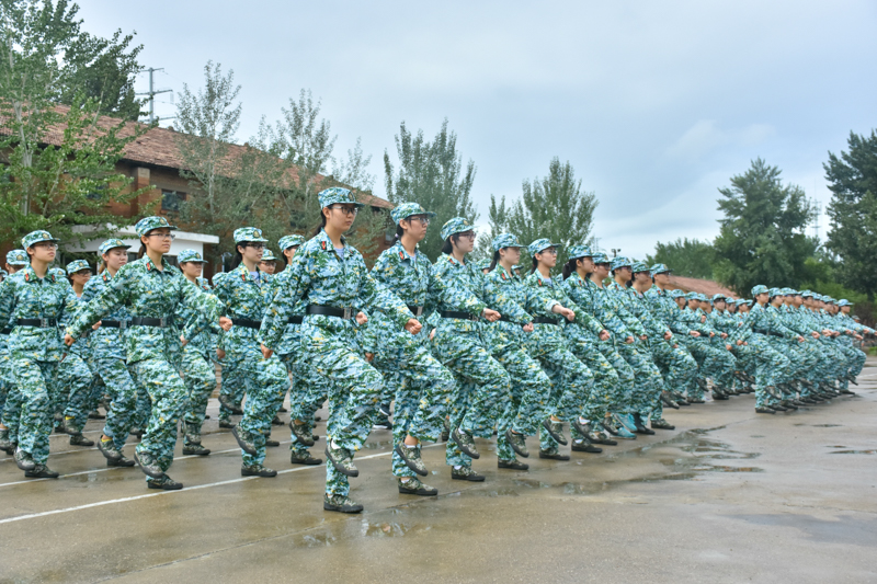 19号和20号连续两天暴雨,教官们紧急启动预备计划,根据天气情况安排了条令学习、内务整理、学军歌等室内活动和小范围的室内训练,并于20号下午举行会操比赛和歌咏比赛。