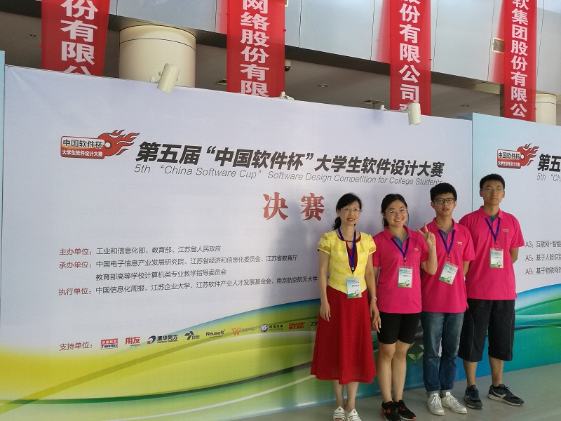 近日,由工业和信息化部、教育部、江苏省人民政府联合主办的第五届“中国软件杯”大学生软件设计大赛及颁奖典礼在南京航空航天大学落下帷幕。我校计信学院计算机专业学生董禹、杜晓敏、田帅同学组成的“BTBU_GO”团队和信息工程专业学生吴萌、顾飞、张雪同学组成的“超能陆战队”团队分别在陈谊老师、龚永罡老师的精心指导下,荣获全国一等奖和全国三等奖,陈谊获优秀指导教师奖。