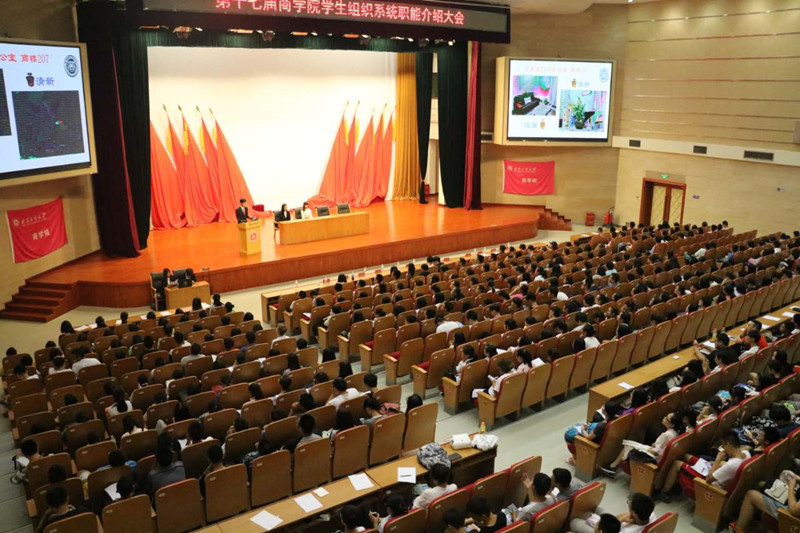 9月6日晚商学院召开第17届学生组织系统职能介绍大会。商学院团委书记李艳春老师代表团学青全体成员对到会人员表示了热烈的欢迎。她谈到,多年来商学院团学青组织遵循院党委提出的“打造实践平台,服务学院建设,助力学生成才”的主题思想,在服务广大师生中发挥了积极的作用。商学院的任何一个部门都是大家施展才华的良好平台,欢迎同学们加入这个大家庭,并祝愿每一位同学都能在学生工作中开拓属于自己的一片天。随后,商学院学生会主席以及各个部门的负责人为新生们做出简单介绍,每位部长都竭力抛出橄榄枝来招揽新生,每个新生也都或跃跃欲试等着招新。商学院的发展需要新鲜血液的注入,此次介绍大会开启了商学院团学青组织新的征程。