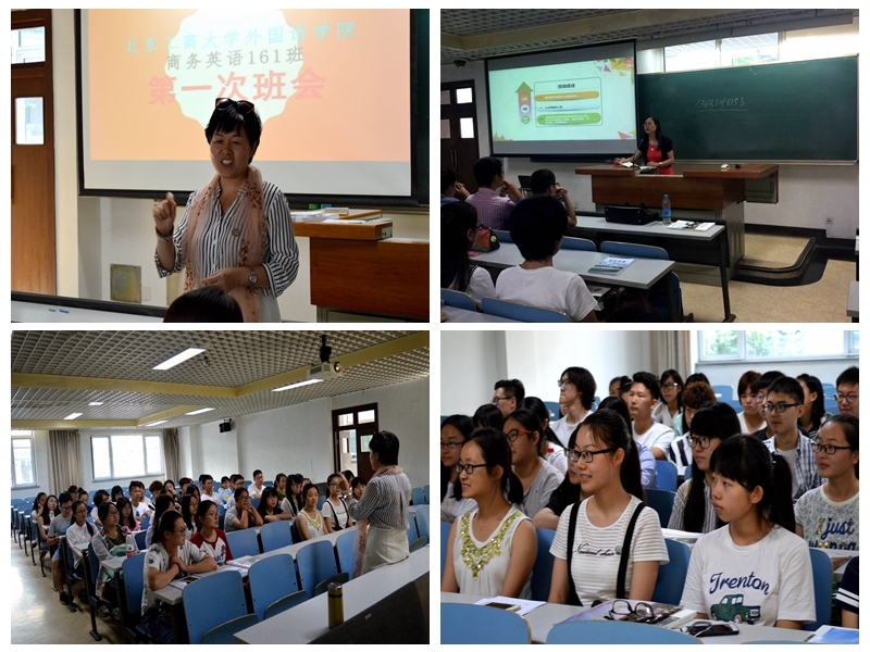 在班主任梁桂霞、刘婧老师的组织下,商务英语161、162班分别开展了新生第一次班会活动。两位老师都有着丰富的教育教学经验,在此次班会上,不仅为学生提供学习、就业方面的帮助和建议,并且在16级学生的学业、学风方面提出了更高层次的要求,助力同学们赢在大学的起跑线上。除此之外,两个班级分别在班主任老师的组织下进行班干部竞选,顺利完成了班团组建,成立了班级委员会。