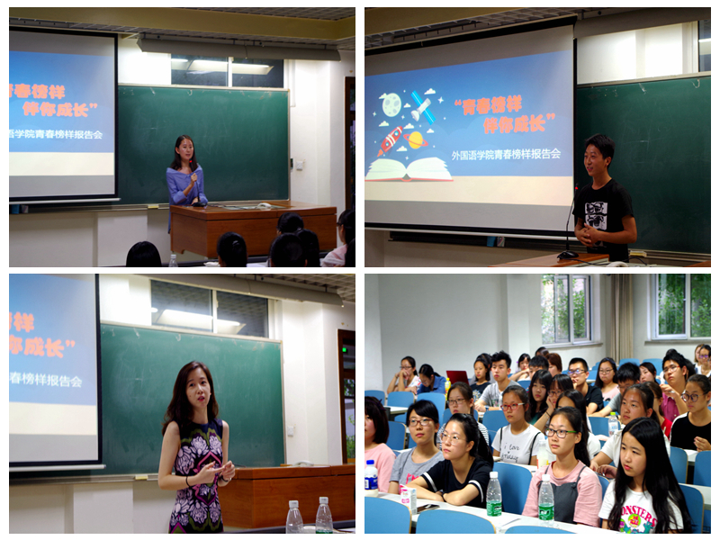为了帮助同学们更好地适应大学生活,外国语学院组织开展“青春榜样,伴你成长”报告会。外国语学院第15级学生会主席张佳兆向同学们分享了英语学习的方法,强调英语学习要脚踏实地,勤奋认真。前文艺部部长李伊凡强调了集体荣誉感的重要性,鼓励同学们积极参与活动,希望每一个同学能够不留遗憾的度过大学四年的生活。