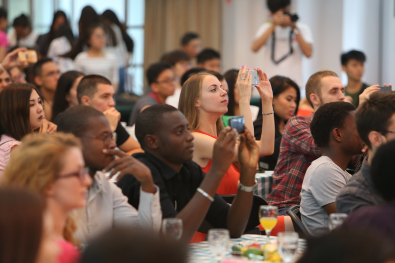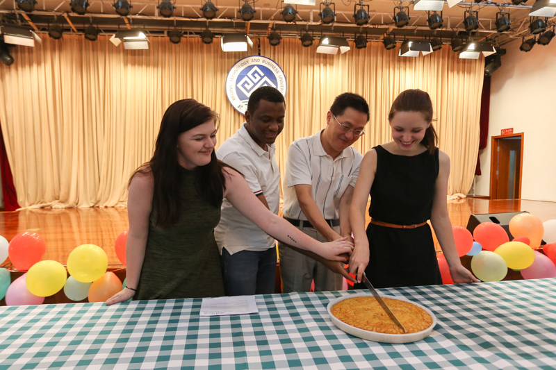 随后,来自不同国家的留学生代表和我校艺术团的代表分享了自己国家的传统节目。来自非洲和亚洲的留学生们表演了当地特色的民族舞蹈,中外学生带来的歌曲表演更是将会场气氛推向高潮。在自由交流时间,留学生们分享着水果和月饼,来自荷兰的哈利•瑞格兹(Harry Regts)说:“这是我第一次吃月饼,觉得特别好吃”。跟随着动感的音乐,节日的喜悦传递给了所有人,同学们跳起了各自国家的民族舞蹈,无比欢快。