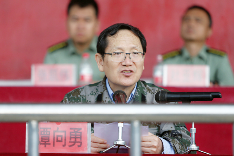 最后,谭向勇书记讲话。他代表学校党委,向承担此次军训工作的193旅全体教官和611军训基地致以崇高的敬意和衷心的感谢,向全体指导教师和参训同学致以诚挚的问候。他向全体参训师生提出三点要求:一是居安思危,牢固树立国防观念。二是不怕吃苦,主动锻炼意志品质。三是持之以恒,全面提高综合素质。他希望全体学生端正认识,端正态度,积极参训,力求佳绩;指导老师紧密配合,严格要求,热情关怀,确保安全;施训官兵依照大纲,严格训练,严密组织。他谈到,今天是9月18日,是我们的国耻日,同时也是中华民族的觉醒日。历史的教训告诉我们,没有强大的国防,就没有人民的安居乐业和幸福生活。他希望同学们胸怀天下,通过军训不断强化国防意识,掌握必要的军事技能,预祝2016级学生圆满完成军训任务。