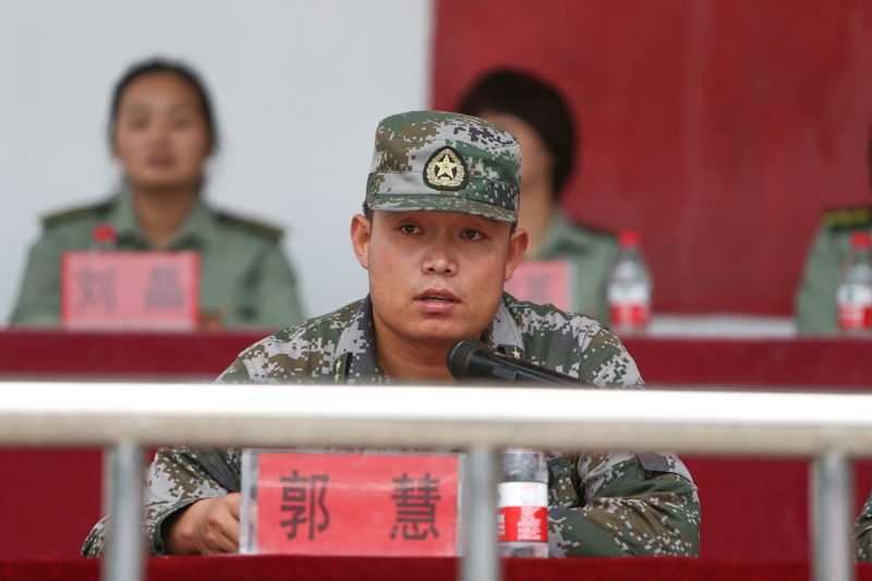 随后,军训团参谋长郭慧作军训动员讲话。他代表承训部队全体教官对奉献在教育战线的老师表示崇高敬意,对各位同学的到来表示热烈欢迎。他希望通过军训,提高同学们的思想政治觉悟,培养积极向上、奋发进取的精神风貌,磨练坚韧顽强的意志品质,养成严明的组织纪律观念,激发同学们的爱国热情。他谈到,军训期间要进行单个军人队列动作、战术基础动作、拳术等军事科目的训练,要严格落实一日生活制度,培养令行禁止的军人作风和良好的军人形象。他相信在全体教官科学施训下,同学们能够服从管理、听从指挥、严守纪律、刻苦训练、顽强拼搏,一定能高标准、高质量地完成军训任务。