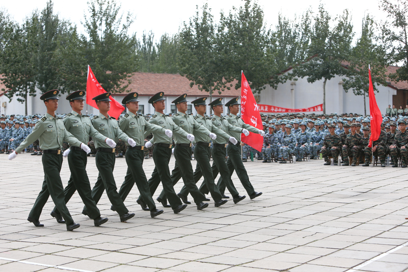 教官代表温耀坤发言,他代表全体教官向老师和同学们郑重表决心:第一,服从命令,听从指挥,严格执行军队的条令条例和规章制度,遵守基地的各种管理规定。第二,明确任务,履行职责,积极负责地做好军训工作,搞好和军训基地的协调。第三,举止端庄,语言文明,始终保持良好的精神状态,维护好军队和基地的良好形象,做好学生榜样。第四,尊重领导,爱护学生,互相学习,共同提高,因人而异,科学施训,采取灵活训练方法,确保训练质量与效果。第五,了解和掌握参训学生的情况,在训练中不出现违纪问题,对待学生严格要求,严格管理,启发自觉,培养参训学生高度组织性与纪律性。