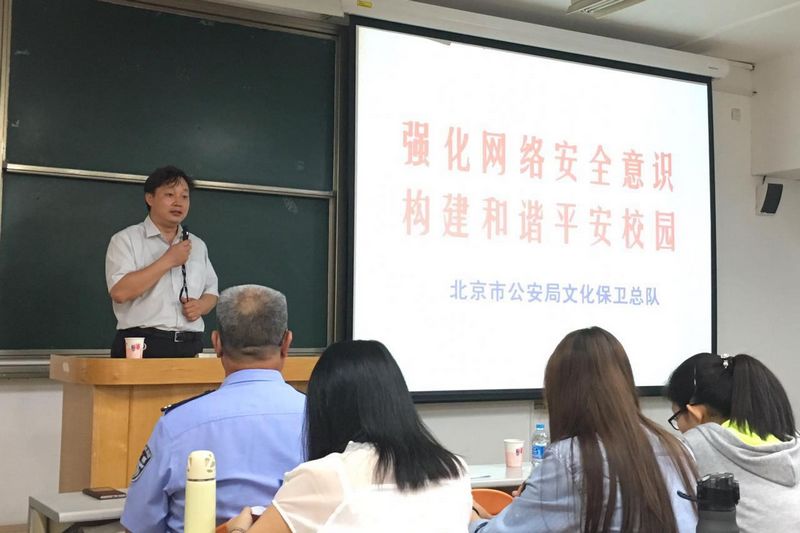 9月21日下午,研究生院和网络中心共同主办的学校网络安全宣传周主题讲座在阜成路校区举行,北京市公安局文化保卫总队网安大队段继亮政委以“强化网络安全意识,构建和谐平安校园”为题,为我校研究生进行了精彩演讲。方德英副校长出席活动并讲话。研究生院熊慧副院长以及研究生辅导员等参加了报告会,讲座由网络中心主任李海生主持。
