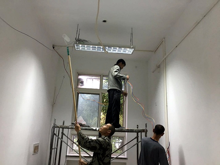 此次假期,后勤基建处两校区实施了良乡校区教学楼修缮、良乡校区学生心理素质拓展馆维修改造工程、良乡校区配电室设备设施改造工程、两校区楼宇电梯更新工程、食品学院实验室改造等共计7项工程,涵盖了两个校区的多个角落。后勤基建处每天安排值班人员巡视施工现场,监督施工过程,随时解决施工中发现的技术难题,保障施工质量。