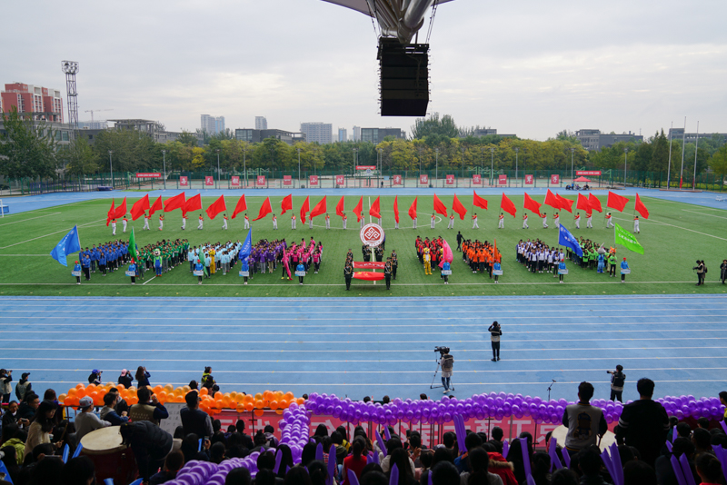 开幕式在激情澎湃的进行曲中拉开了帷幕。由12名国旗手组成的国旗、校旗和校徽方阵走向主席台。旗手们个个精神抖擞,意气风发。各学院运动员们身着统一的服装,迈着自信的步伐,昂首挺胸,阔步走进体育场。他们昂扬的姿态将蓬勃向上、拼搏进取、永不服输的体育精神传递给运动场中的每一个人。