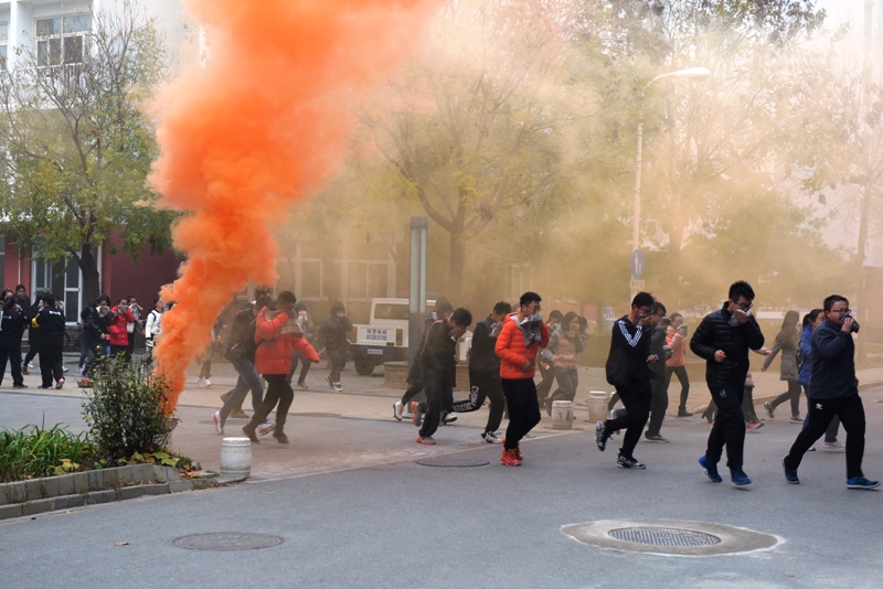 为了巩固“平安校园”创建工作成果,实施“平安校园”建设提升工程,进一步做好学校防火安全工作,增强师生员工消防安全意识,提高师生员工安全防范及自救能力,结合“119”防火宣传日活动,11月9日下午,由保卫处、学生处、后勤基建处等部门组织各学院师生员工在良乡校区生活区进行了大型的防火安全疏散演练活动。副校长张耘担任本次演练的总指挥,房山区公安消防支队、拱辰派出所、良乡高教园区等单位的领导应邀参加了活动。