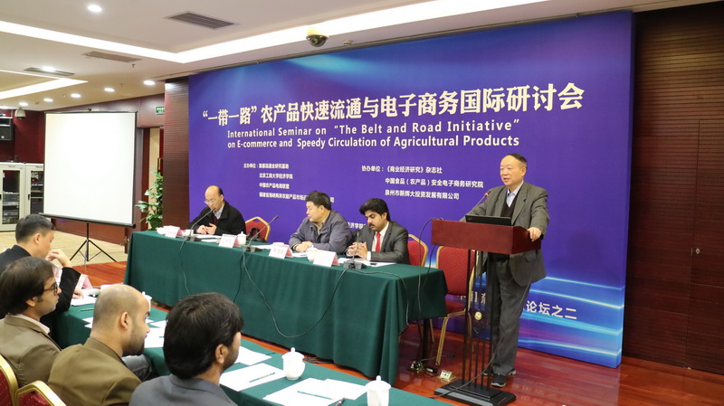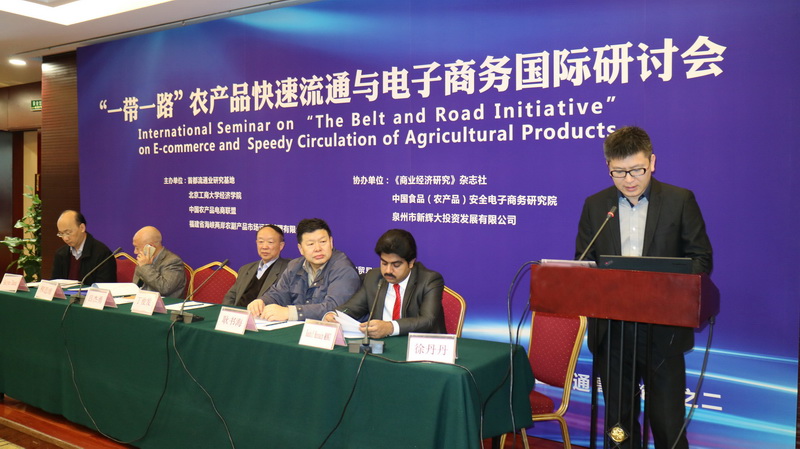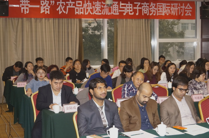11月20日, 我校主办的“‘一带一路’农产品快速流通与电子商务国际研讨会”在京举行。来自美国、巴基斯坦的国外学者,40余家国内高校、企业和政府部门的专家代表,我校经济学院教师、产业经济学与国际商务研究生,学校留学生代表等130余人参加了会议。