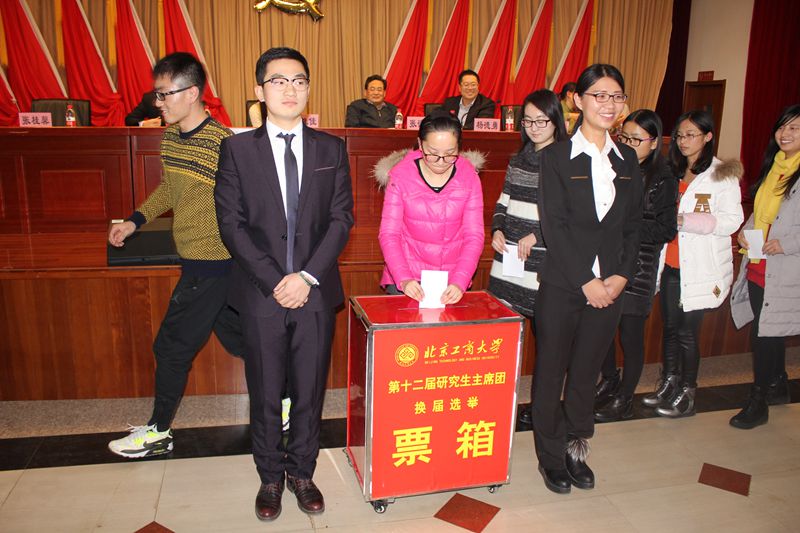 会议听取、审议并表决了《北京工商大学第十二次研究生代表大会代表资格审查报告》、《北京工商大学第十一届研究生会委员会工作报告》、《北京工商大学第十一届研究生会委员会经费使用报告》。大会经由第十二届研究生会主席团候选人竞选展示,通过代表无记名投票的方式,差额选举产生了我校第十二届研究生会主席团成员。
