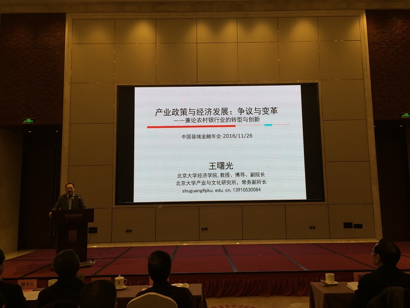 在主题演讲阶段,中央政策研究室经济局局长冯海发发表了题为“最新经济政策解读及经济趋势分析”的主旨演讲;北京大学经济管理学院副院长王曙光教授分享了中国产业政策和经济发展的争议与变革方面的研究成果;中国人民银行货币政策司研究员穆争社就新常态与供给侧改革等问题展开探讨;北京工商大学区域金融工程研究中心主任、北京区域经济学会会长杨德勇教授从县域经济发展意义、县域经济发展概况、县域金融生态环境现状和县域金融工程简介等四个维度阐述了自己的观点;中国人民银行研究员、人民银行甘肃分行行长姜再勇针对我国县域普惠金融发展的基本逻辑进行剖析。嘉宾的精彩发言赢得了与会人员的一致认可和热烈反响。