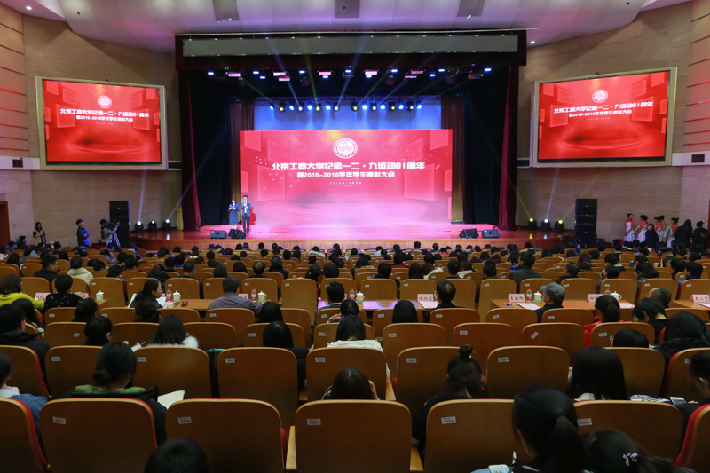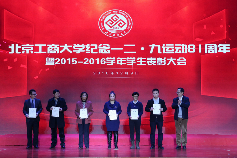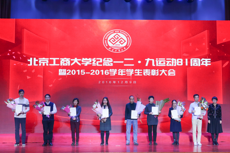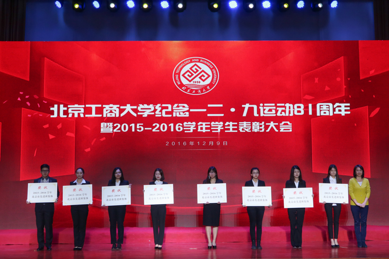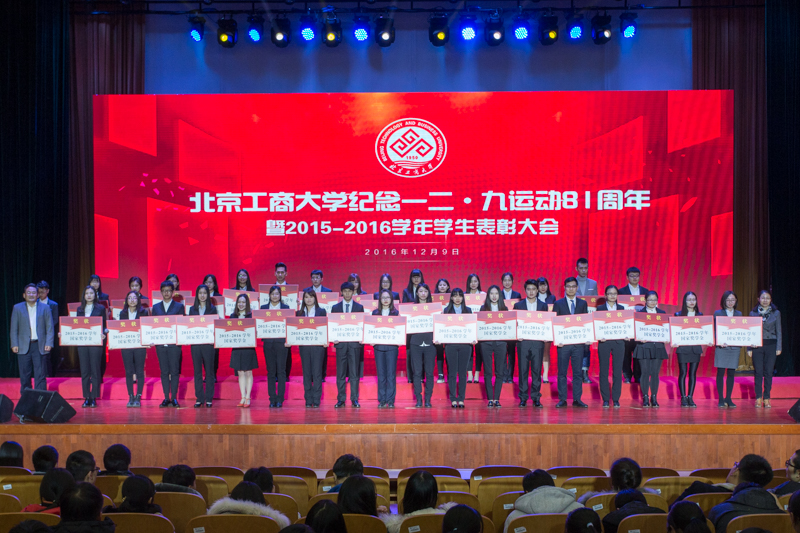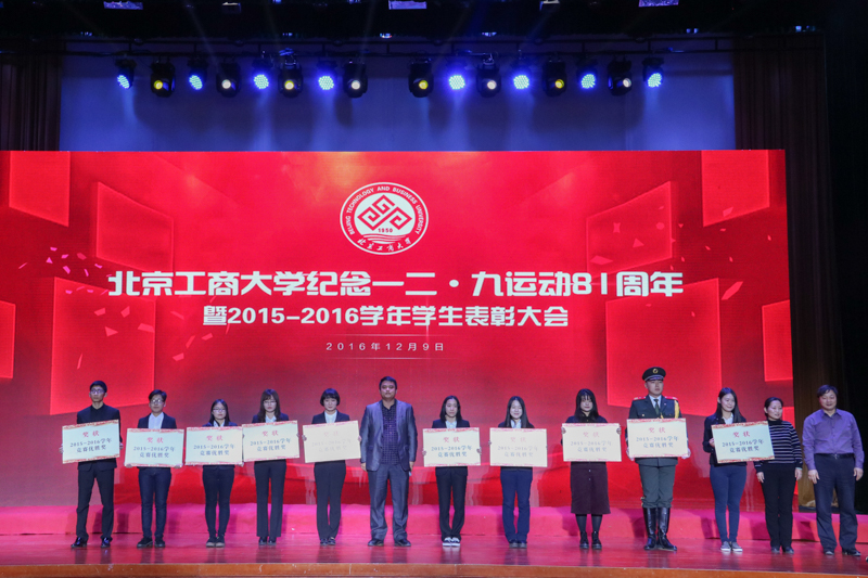 为弘扬伟大的爱国主义精神,表彰先进,12月9日,学校在良乡校区召开纪念一二·九运动81周年暨2015-2016学年学生表彰大会,表彰了6类获得市级以上奖项的学生集体、个人和学校十佳班主任。学校党委书记谭向勇、副书记张德玉、副校长李朝鲜、方德英、纪委书记邱晓平、党委副书记董竹娟出席活动。各学院党政领导、市级获奖学生代表、16级本科生代表以及特邀嘉宾社会奖学金资助方代表一同参加活动。