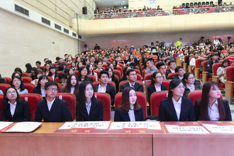颁奖期间,学校播放了精心制作的6个视频,用声音和画面分别展示了获奖集体与学生个人的风采。他们勤奋学习、参加比赛、积极实践、热心公益、团结奋进的动人画面,赢得在场师生阵阵掌声。在表彰环节,部分获得国家奖学金的学生代表与大家一起发表了他们的获奖感言,感谢辛勤付出的老师,并与大家分享了他们大学学习和生活的感悟。获得市级比赛奖励的学生和他们的指导教师一同上台领奖,发表了获奖感言。