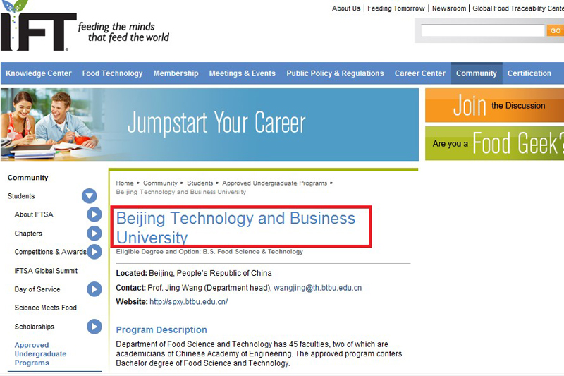 1月,食品学院食品科学与工程本科专业通过IFT食品专业国际认证,11月,通过IUFoST食品专业国际认证。至此,我校成为全国第一所食品科学与工程专业同时通过IFT和IUFoST食品专业国际认证的高校,标志着我校食品科学与工程硬件、师资和教学已达到国际公认水准,为进一步提升专业教学质量和推动专业国际化奠定了基础。