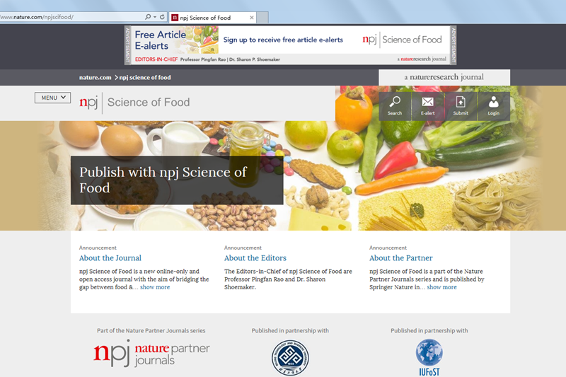 6月,我校与施普林格·自然(Springer Nature)旗下的自然科研集团(Nature Research)、国际食品科学技术联盟(IUFoST)三方合作出版具有高影响力的开放获取期刊《npj Science of Food》,打造世界食品界一流期刊。