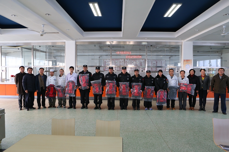 1月12日上午,学校工会主席、副校长郑文红和分管后勤保卫的副校长张耘带领工会干部慰问了保卫、后勤等部门的全体合同制员工共计400人。校工会为他们送去了印有学校标志字样的双肩背包,表达学校党政和全校教职工对他们的关爱和感谢,希望他们带着浓浓工商情,回家过新年。