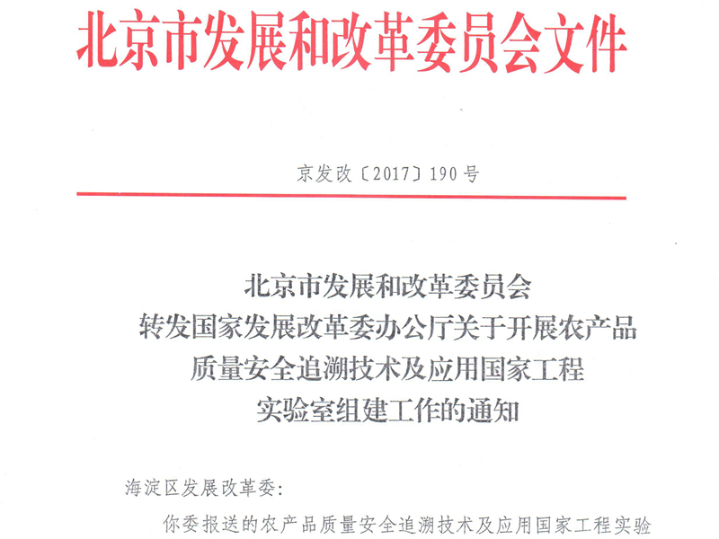 2月24日,国家发展和改革委员会、北京市发展和改革委员会先后下达《关于开展农产品质量安全追溯技术及应用国家工程实验室的通知》,我校与北京农业信息技术研究中心等4家机构联合申报的“农产品质量安全追溯技术及应用国家工程实验室”正式获批。这是我校首次获批国家级重点实验室。