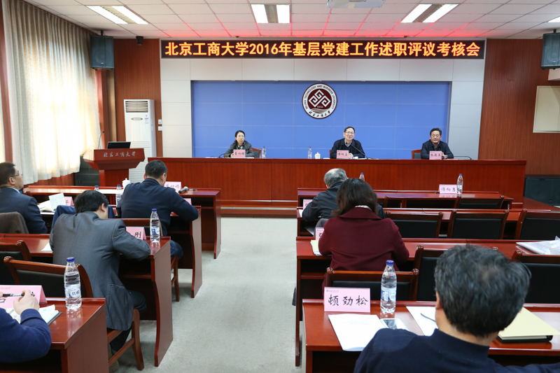 按照市委教育工委统一部署和学校《2016年基层党建述职评议考核工作实施方案》的安排,3月3日,学校在阜成路校区召开2016年基层党建工作述职评议考核会。学校党委书记谭向勇、党委副书记张德玉、党委常委王小艺出席会议并点评。学校基层单位党组织书记、党委职能部门负责人、 “两代表一委员”、基层党员干部和群众代表等40余人参加会议并进行评议。会议由党委副书记董竹娟主持。