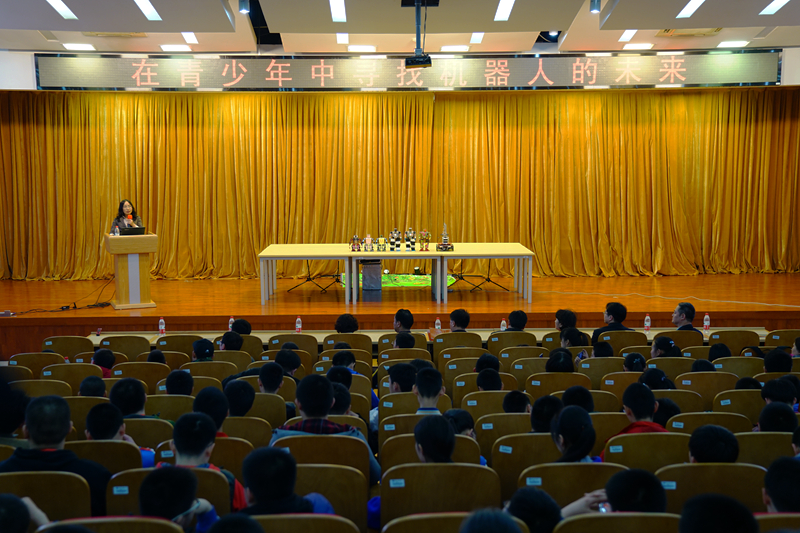 本届机器人大赛首次设置科普讲座环节。特别邀请我校计算机与信息工程学院吴叶兰副教授作了题为《在青少年中寻找机器人的未来》的科普报告。吴老师从机器人概念的历史沿革、应用领域、国内外最新研究进展等方面,为参赛师生展示了丰富多彩的机器人世界。吴老师指导的机器人团队现场与参赛师生进行了精彩演示和互动,受到参赛师生的热烈欢迎。