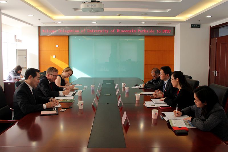 3月28日,美国威斯康辛大学帕克赛德校区副校长罗伯特·杜可非(Robert Ducoffe)一行三人访问我校,李朝鲜副校长在阜成路校区亲切会见了代表团一行。