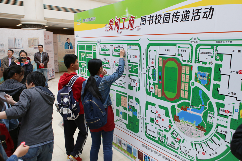 作为本届读书节主打活动之一的“爱阅工商”图书校园传递活动在开幕式中启动。师生票选产生的首批30本优秀图书,由方德英副校长及与会嘉宾交于学生图书推荐人,推荐人在校园地图上标记将要放置图书的位置,并在仪式后将图书传出。活动启动一天以来,已有许多同学通过微博、微信“晒”传出和找到传递书的消息、位置及照片。