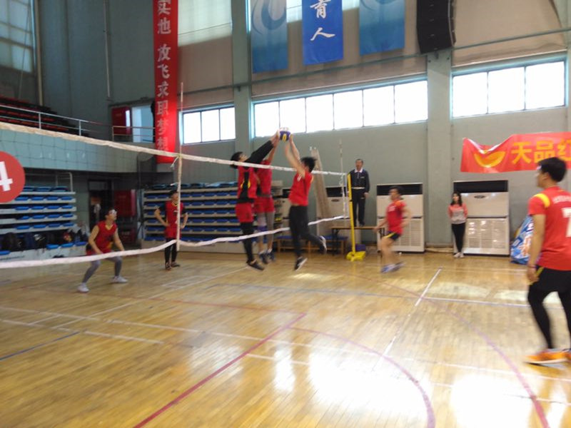 我校女子排球队先后战胜北京航空航天大学、北京理工大学、北京化工大学进入四强。其中在对阵北京航空航天大学决胜局的比赛中,我校女排一度因为队长张睿雯踝脚扭伤以8:12落后,但女排姑娘们并没有因此放弃,他们不畏困难,忘我拼搏,勇于发挥,最终以15:13战胜北京航空航天大学队进入四强。