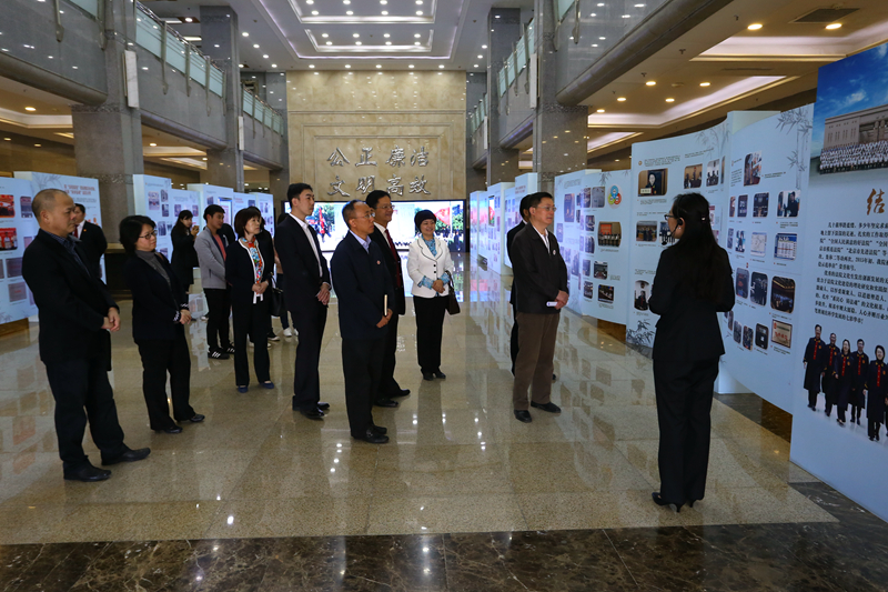 签字仪式前我校一行人参观了房山区人民法院的“系民心 铸法魂”文化建设主题展、阳光诉讼服务大厅和执行指挥中心,观看了院史记录片《前进中的房山法院》和自制微电影《法官日记》,了解了近年来房山法院在党建工作建设、职业队伍建设、精神文明建设等方面做出的努力与取得的成绩。
