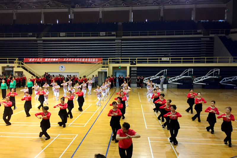 5月18日,北京市委教育工委市教委在首都体育学院举办“喜迎十九大,健身乐晚年”北京高校老同志健身项目展示活动,来自31所高校的千余名老同志参加健身项目展示。我校金乐舞蹈队30名老同志表演了《第一套戏曲广播体操》,并喜获“阳光风采奖”。