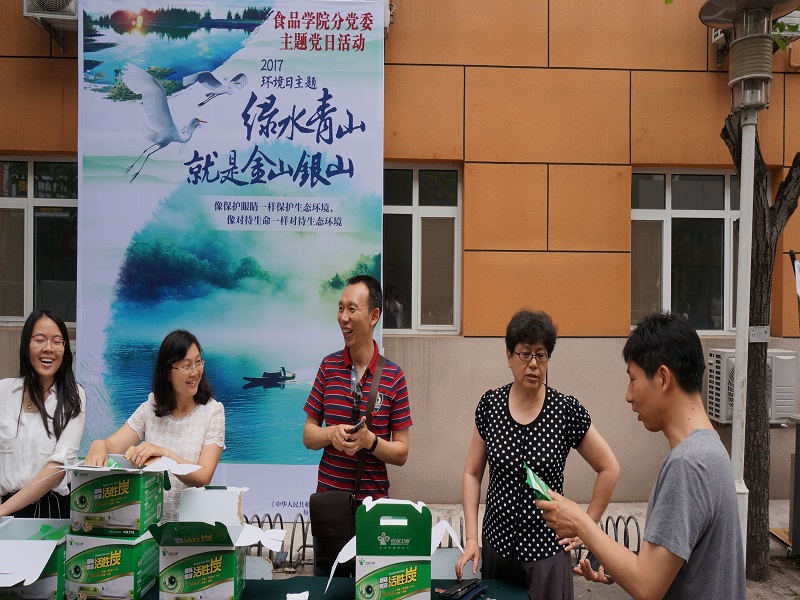 为纪念中国共产党成立96周年,深入开展“两学一做”学习教育,6月5日中午,食品学院分党委在阜成路校区开展了“世界环境日主题宣传暨师生服务”主题党日活动。校领导张德玉、方德英、邱晓平、董竹娟参加了本次活动。