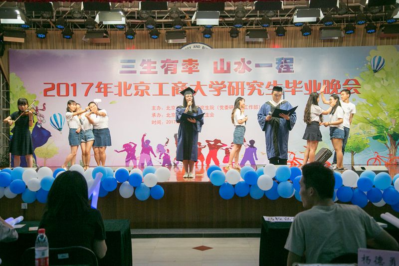 晚会展现了研究生们丰富多彩的课余生活,表达了毕业生对母校的不舍与眷恋,饱含母校和导师对毕业生的祝福与期盼。三生有幸,在北工商遇到你,山水一程,最美的年华和你一起走过,衷心祝愿2017届毕业研究生前程似锦,一切顺利。