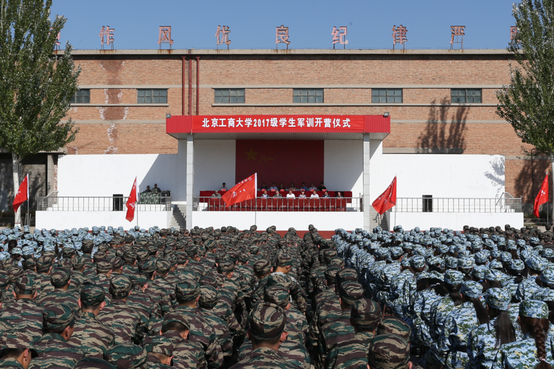 开营仪式伴随着嘹亮的军歌正式开始。学校党委副书记、军训团总指挥张德玉宣读《北京工商大学关于开展2017级本科生军训并成立军训团的决定》。我校2017级学生军训时间为9月18日到29日,本次军训团划分为6个营、16个连共70个班,其中一营为商学院,二营为经济学院,三营为计信学院,四营为理学院和材机学院,五营为食品学院和法学院,六营为艺传学院和外国语学院。