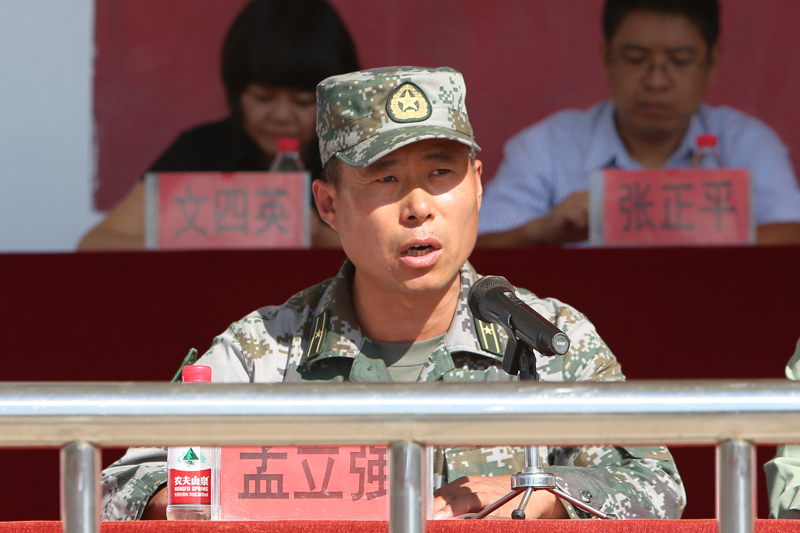 随后,军训团团长孟立强作军训动员讲话。他代表承训部队和基地全体同志基地对支持国防教育和培养社会英才付出辛勤努力的领导和老师表示崇高敬意,对各位同学的到来表示热烈欢迎。他介绍了高校学生接受军事训练的重要意义和本次军训的安排,希望同学们珍惜军训机会,自觉服从命令,听从指挥,磨练心智,锤炼体魄,努力提高军事技能,养成雷厉风行、令行禁止、勇敢顽强、不畏艰险的品质。他相信在全体教官科学施训下,同学们能够服从管理、听从指挥、严守纪律、刻苦训练、顽强拼搏,一定能高标准、高质量地完成军训任务。