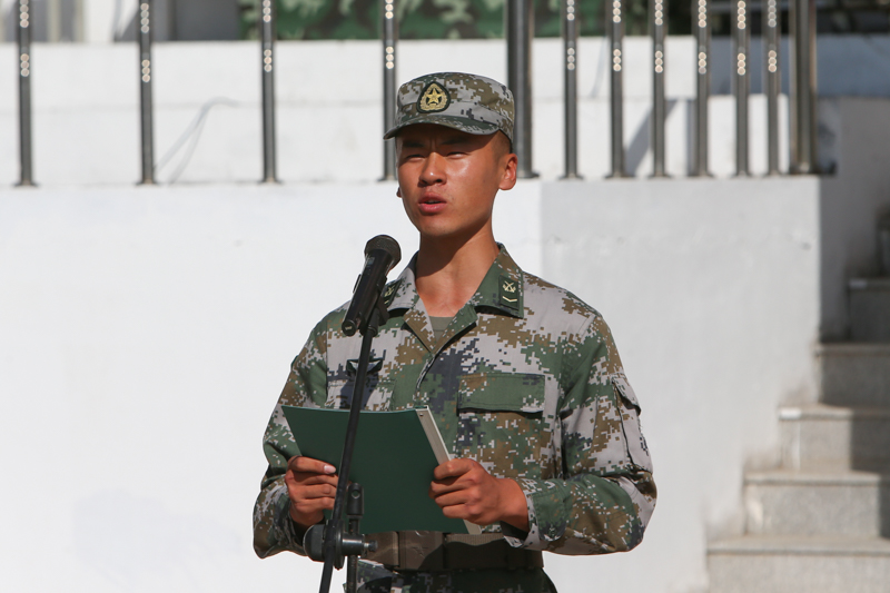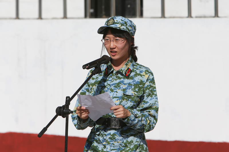 来自二营五连经济学院的王静娴代表全体参训新生作出承诺:服从命令,听从指挥,严格落实军训团各项规定、要求,坚决服从教官、老师的管理。不怕吃苦,严格训练,发扬“掉皮掉肉不掉队,流血流汗不流泪”的精神,高标准地完成所有既定的军训科目。同时,热爱集体,珍惜荣誉,虚心学习,认真实践,将在军训中养成的良好习惯和优良作风带到今后的学习和工作中。