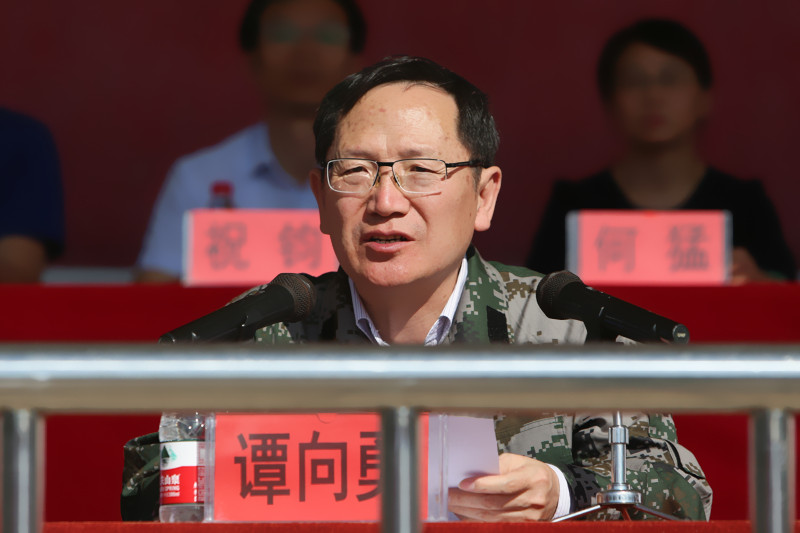 最后,学校党委书记谭向勇讲话。他代表学校向承训部队全体官兵、611基地精心筹备我校军训工作表示衷心的感谢,向全体参训学生和老师表示亲切的慰问。适逢“九一八”纪念日,谭书记与同学们共同回顾了中华民族艰苦抗战的历史,叮嘱大家要铭记历史,强调只有强大的国防力量才能捍卫国家主权、维护长久和平。谭书记谈到,正值青春年华的同学们接受一次全面军事训练的重要意义在于学习军事技能,激发爱国热情,培养优良作风,提高综合素质。他对参训新生提出三点希望和要求:一是居安思危,牢固树立国防观念。牢固树立“国不可一日无防”的忧患意识,培养自己“家国天下”的广阔胸怀,为投身国防、报效祖国时刻做好准备。二是不怕吃苦,主动锤炼意志品质。要认真学习军人的优良品质和光荣传统,严格遵守军训的作息时间和各项规定,发扬“特别能吃苦、特别能战斗、特别能奉献、特别能团结”的精神,以优异的军训成绩向自己、向家人、向学校汇报。三是持之以恒,全面提高综合素质。希望同学们不畏艰难、勇于拼搏、突破自我、全面提升,努力站出最标准的军姿、走出最雄壮的步伐、练就最刚强的意志,要将军训中养成的良好品格、作风、纪律和习惯延续到今后四年的学习、生活、工作之中,转化为人生的宝贵精神财富,努力成长为信念坚定、品德高尚、意志顽强、能力卓越的优秀青年。谭书记希望全体新生提高认识,端正态度,积极参训,力求佳绩;指导老师紧密配合,严格管理,热情关怀,确保安全;施训官兵依照大纲,科学施训,严密要求,并预祝2017级学生顺利完成军训任务。