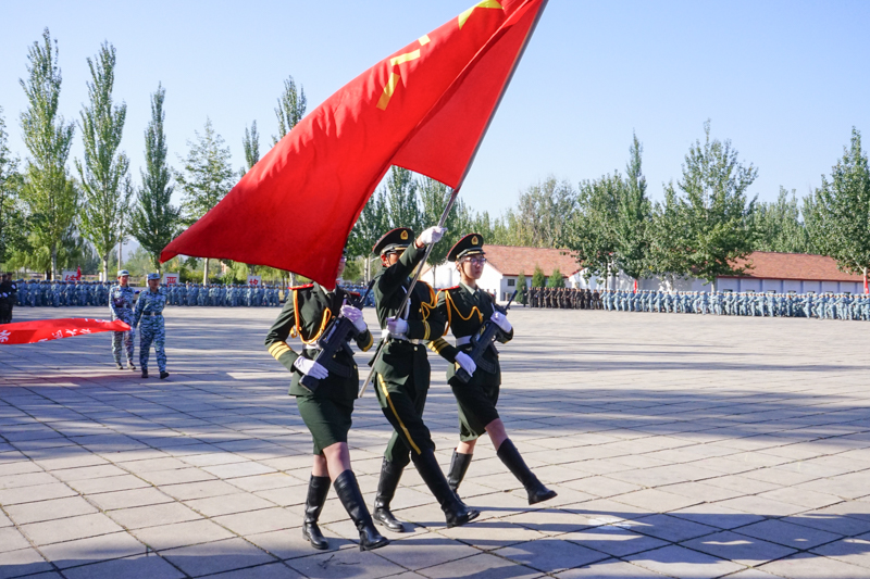 肃穆的军旗迎风飘扬,上午8时,军训结训仪式正式开始。在八一军旗的率领下,来自6个营的29个方队踏着慷慨激昂的军乐旋律,迈着稳健有序的步伐依次走过主席台,向学校领导、部队首长和老师们汇报军训成果。经过为期两周的艰苦训练,2017级全体军训学员朝气蓬勃、斗志昂扬,他们坚毅的脸庞、整齐的步伐、响亮的口号、饱满的精神,充分展现了大学生朝气蓬勃、训练有素的良好风貌,给人以震撼人心的力量,赢得了在场师生阵阵热烈的掌声。