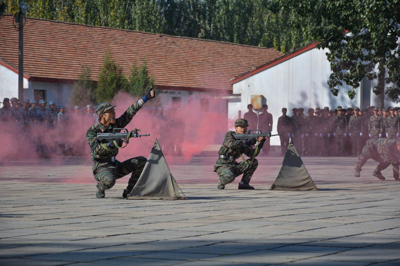 随后展开军训科目汇报表演。单个军人停止间队列动作、分队队列动作、班进攻与战伤救护、军体拳、女子防身术等表演方阵依次登场亮相。在单个军人停止间队列动作、分队队列动作汇报表演中,同学们步伐坚定,口号洪亮,动作整齐划一,展示了新生们自信坚毅、积极向上的良好精神风貌。在班进攻与战伤救护表演科目中,战地状况的真实模拟营造出危机紧迫的局面,充分体现了救护技术技巧的重要性以及同学们有素训练的收获和机警果敢的特质。在男子军体拳、女子防身术表演中,同学们动作专业娴熟,一招一式整齐规范、刚劲有力,展现了军训别样的风采。不同的表演方阵特色鲜明、气势如虹,全方位展示了此次军训的优秀成果,赢得了在场领导老师的阵阵掌声与一致好评。