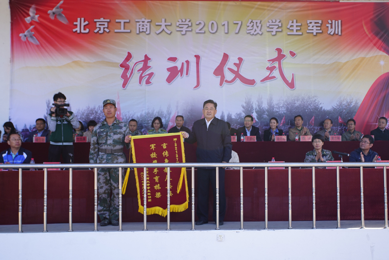 最后,校长孙宝国作总结讲话。他代表学校党政向承训部队全体官兵和军训基地各位同志的辛勤付出表示衷心感谢,向圆满完成军训任务的带队老师和2017级同学们表示热烈祝贺,对同学们军训期间展现出的很高的积极性和纪律性、坚强的吃苦耐劳精神感到骄傲。孙校长向同学们介绍了此次承训部队的光辉历史,希望同学们从教官身上学到承训部队吃苦耐劳的优良传统、坚韧不拔的工作作风以及无私奉献的高尚品德。他谈到同学们通过军训磨练了意志,培养了优良的团结协作精神,收获了成长,是人生一段难忘的旅程。孙校长希望同学们在假期中认真思考如何尽快适应大学生活,并为大家提出三点建议:一是假期过后回到学校调整状态立即全身心投入到学习中,把学习作为第一要务。二是养成终生受益的良好习惯,坚持“五早一晚”,打造出健康体魄和过硬的心理素质。三是坚持底线,做到考试不作弊、学术不做假。孙校长希望同学们牢记“求真、立德、勤奋、创新”的校训,即使完成学业,走上人生旅途,也不忘初心,砥砺前行,做一个有信仰、有理想、有追求、德才兼备、勇于担当、敢于拼搏的北工商人,并预祝大家国庆节、中秋佳节快乐!