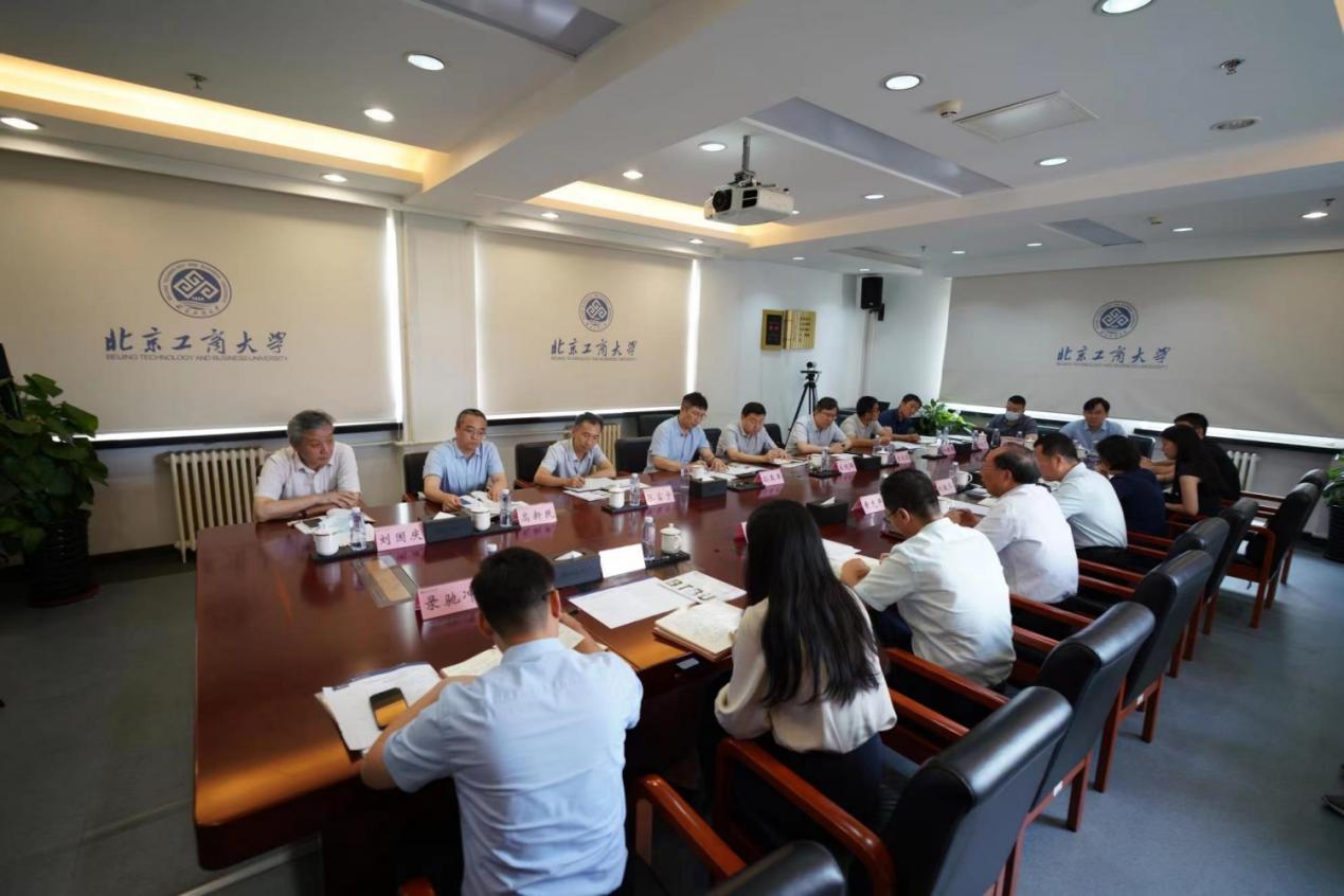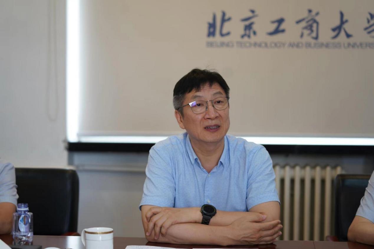 交流座谈会上,黄先开代表学校对孙其军一行到校调研指导表示热烈欢迎,并对市教委长期以来对学校的大力支持表示感谢。黄先开对学校两校区的功能定位、规划布局进行了汇报,并详细介绍了学校的历史沿革、办学特色、目标定位,以及近年来学校在人才培养、学科建设、科学研究、社会服务等方面取得的成绩。他指出,学校已明确“商科做强、工科做精、工商融合、双轮驱动”的学科专业布局定位,正举全校之力创建“双一流”学科。学校锚定“食品进全国前三、商科数字化转型”的发展目标,以数字化转型、信息化赋能,推动学校“双一流”创建和高水平研究型大学建设,更好服务国家战略和首都经济社会发展。